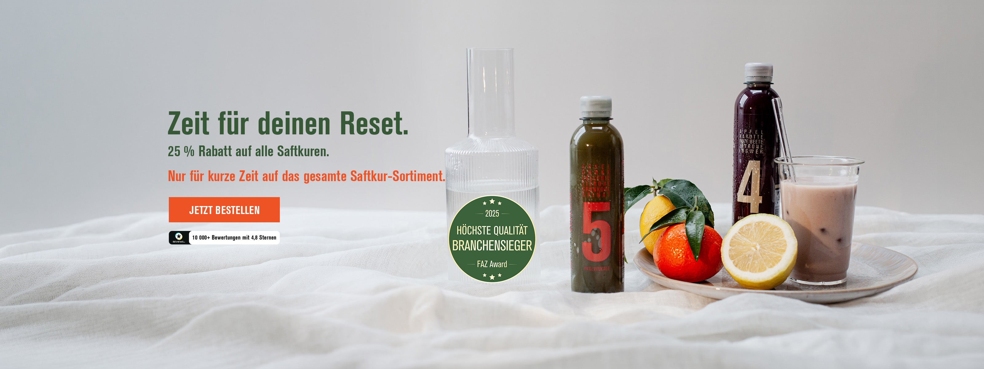 “Ich liebe das Saftfasten, da es mich erst mal wieder auf 0 zurücksetzt und ich danach aktiv überlegen kann und muss, was ich meinem Körper als Kraftstoff geben möchte. Es vereinfacht die Essensplanung, führt zu mehr Achtsamkeit, hilft der Zellerneuerung und führt dazu, dass ich danach mehr Lust auf gesunde Lebensmittel habe und merke wie gut man sich mit weniger und gesünderem Essen fühlen kann.”